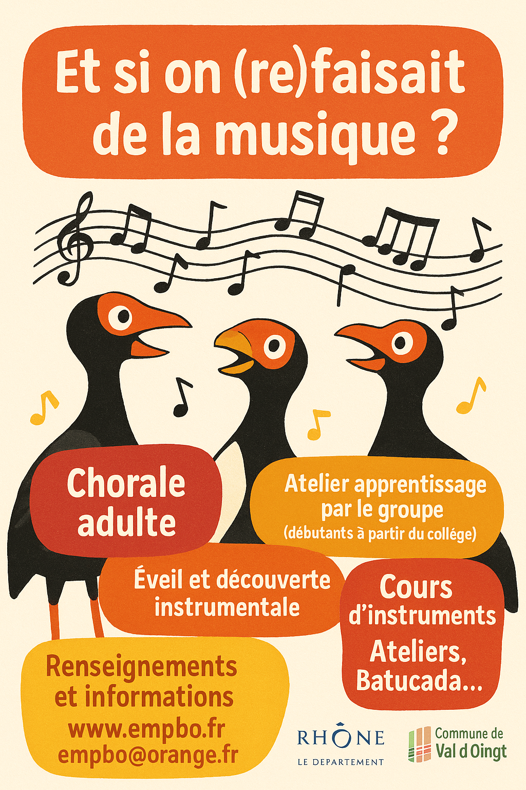L’Ecole de Musique des Pays du Bois d’Oingt (EMPBO) est une structure associative comptant 160 élèves et 11 professeurs.